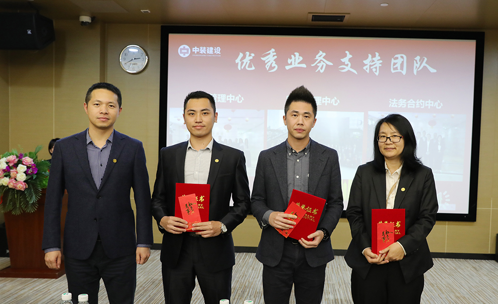 2月18日,中裝建設2018年度表彰暨2019年開工動員大會在總部四樓會議室舉行。中裝建設總裁莊展諾、高級副總裁于桂添、高級副總裁曾凡偉、高級副總裁楊戰(zhàn)、高級副總裁熊兆寬及公司各中心、部門負責人參加了此次會議。