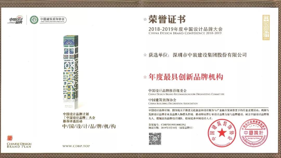 2014年,中裝建設(shè)獲評“深圳建筑裝飾設(shè)計十年功勛企業(yè)”,且連續(xù)多年蟬聯(lián)“中國建筑裝飾設(shè)計機構(gòu)五十強”榮譽稱號。2016年,在第七屆中國國際空間設(shè)計大賽中榮獲“中國建筑裝飾杰出辦公空間設(shè)計機構(gòu)”。2018年度,中裝建設(shè)榮獲“最具創(chuàng)新設(shè)計機構(gòu)”“最具影響力設(shè)計機構(gòu)”。