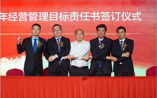 目標(biāo)清晰,使命在肩。經(jīng)營管理層當(dāng)場簽訂“軍令狀”——2018年度《經(jīng)營管理目標(biāo)責(zé)任書》,確定目標(biāo),明確責(zé)任,確保全面完成或超額完成2018年度各項目標(biāo)任務(wù)。