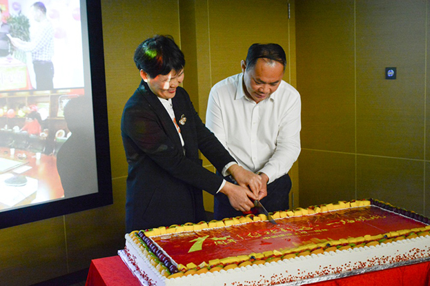 ▲董事長(zhǎng)與員工代表共同切開(kāi)慶典蛋糕